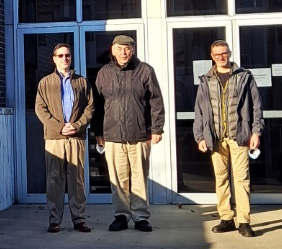 During December, Mike also met with Federation Security Chair Evan Wyner (photo on left, standing at right) and Westville Synagogue Security Chair Elliott Croll (center) to discuss safety and security matters at the synagogue.